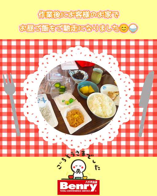 お世話になっているリピーター様のお家にて作業後、お昼ごはんをご馳走になりました(^人^)✧