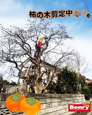 大きな柿の木の剪定をさせていただきました〜('◇')ゞ